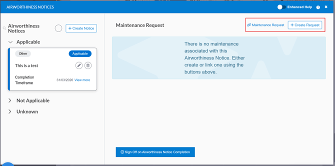 Below is a video demonstration of how to create an airworthiness notice and linking it to a maintenance request.