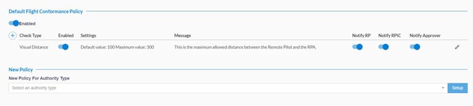 There is a special case with this setting, as it can also be set on a per-RPA level. For example, if you operate a fleet of DJI Mavics and Matrice 350s, they will have quite different visual ranges and this can be reflected in your conformance policy.