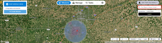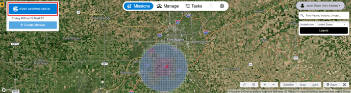 You can start an airspace check on the map from the Missions dashboard.