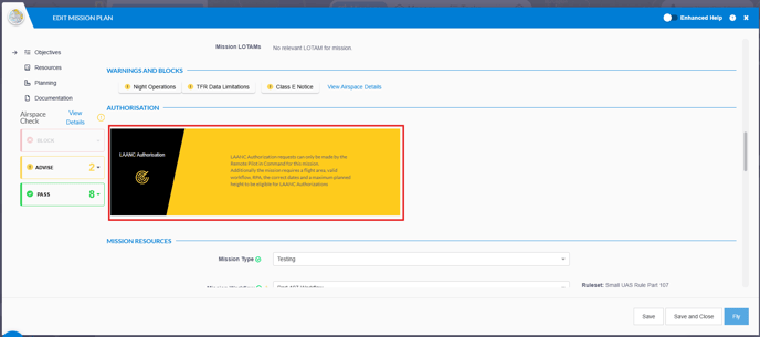 In order to start an authorisation, your mission plan must meet the following criteria: