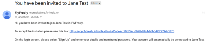 Follow this process when you have been invited to an organisation and this is your first time signing up to FlyFreely as a user.