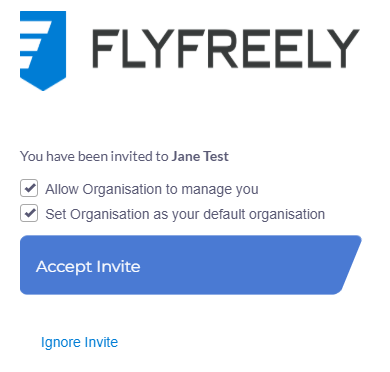 When an organisation invites you to join, you'll need to register for a FlyFreely account and complete the initial onboarding steps to set up your profile before you can access the organisation’s account.
