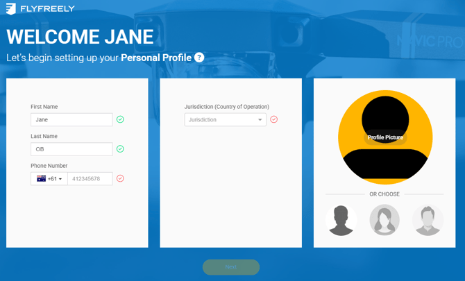 Note: if you don't have the information at hand, you can add this to your profile later on via the desktop FlyFreely office app.